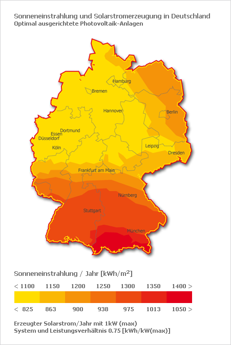Die mittlere Strahlungsintensität in Deutschland ist in der Regel groß genug, um Photovoltaikanlagen wirtschaftlich zu betreiben, wenn mit einem Kapitalzinssatz von 4 % und spezifischen Investitionskosten von 5.000 Euro/kWp gerechnet wird.